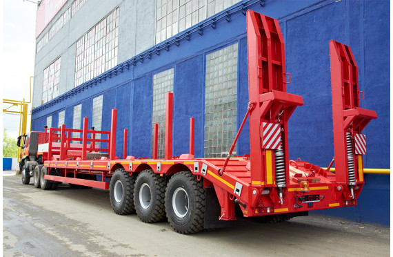 47000 кг, шины 395/85R20 или 445/65R22,5 / 6+1, платформа 11502 по трапам) x 2500 с уширителями до 3000 мм, треугольные аппарели, ССУ 1530 мм, рессорная подвеска, раздвижные коники 1500 мм