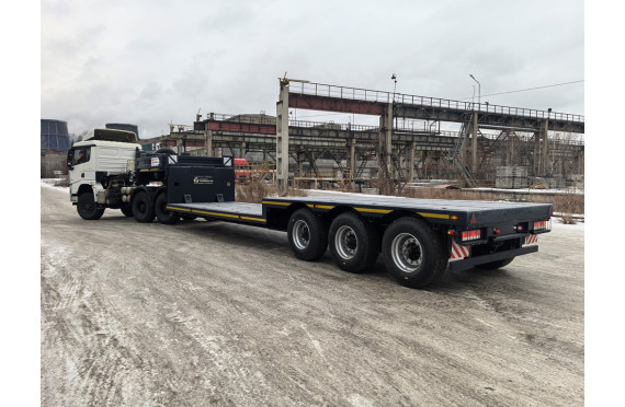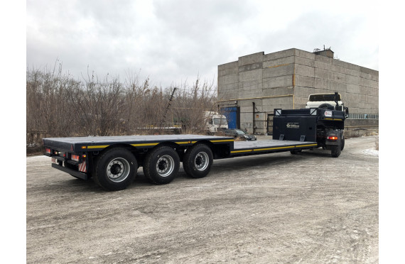 45000 кг, шины 445/65R22,5 или 395/85R20 / 6+1, платформа 10300 (11080 до трапов) x 2500 с уширителями до 3000 мм, механические трапы, ССУ 1510 мм, пневматическая или рессорная подвеска, съемные стойки 1500 мм, съемные борта