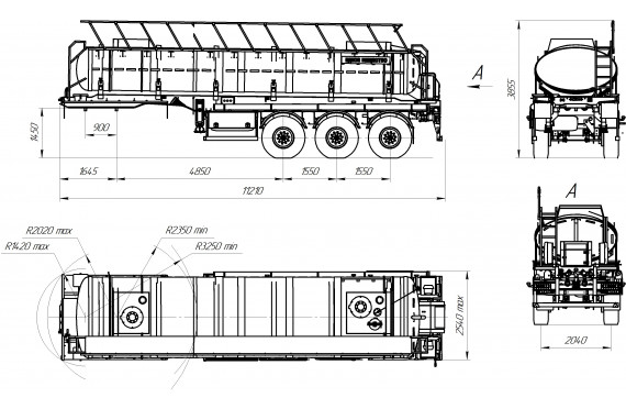 Материал: химстойкое стекловолокно, емкость: 20 куб.м., сечение: эллипсное, конструкция: однослойная или трехслойная (стекловолокно + утеплитель + стекловолокно), крепление: при помощи стяжных лент, перевозимые жидкости: кислоты/едкие вещества/нефть/техвода/щелочные и солевые растворы, автошины 425/85R21