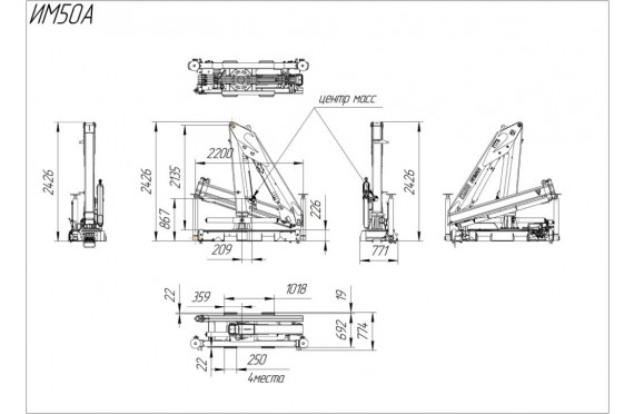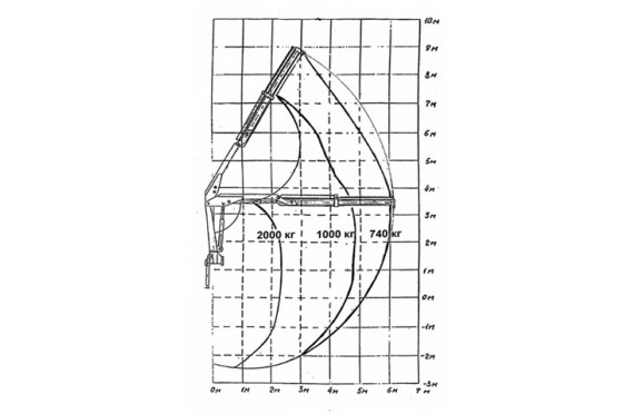 вылет 6,00 м, грузовой момент 4,40 тм, грузоподъемность 2000 кг