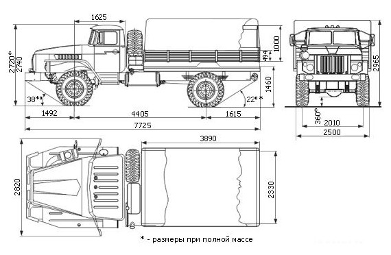 | Раздаточная коробка | ОАО «АЗ «УРАЛ», 2-х ступ. с межосевым дифференциалом (высшая передача 1,04; низшая передача 2,15) |